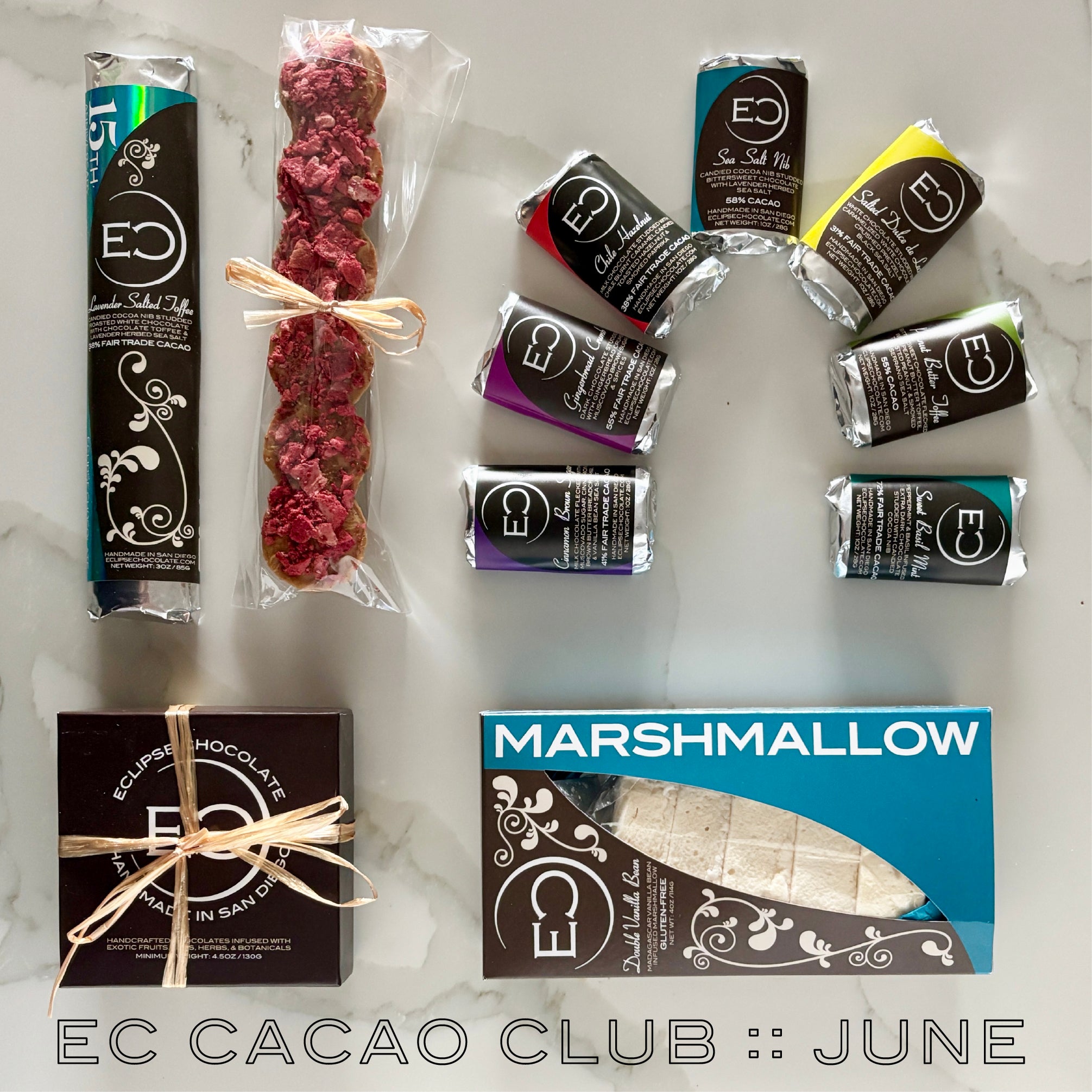Each Full Moon, you'll receive a shrink-wrapped gift box beautifully presenting seasonal favorites, including our exclusive Salted Caramel Rocky Road Bar. This oversized 6oz bar made in unique monthly flavors featuring six creme fraiche caramel+marshmallow filled sections, is not available for individual purchase.